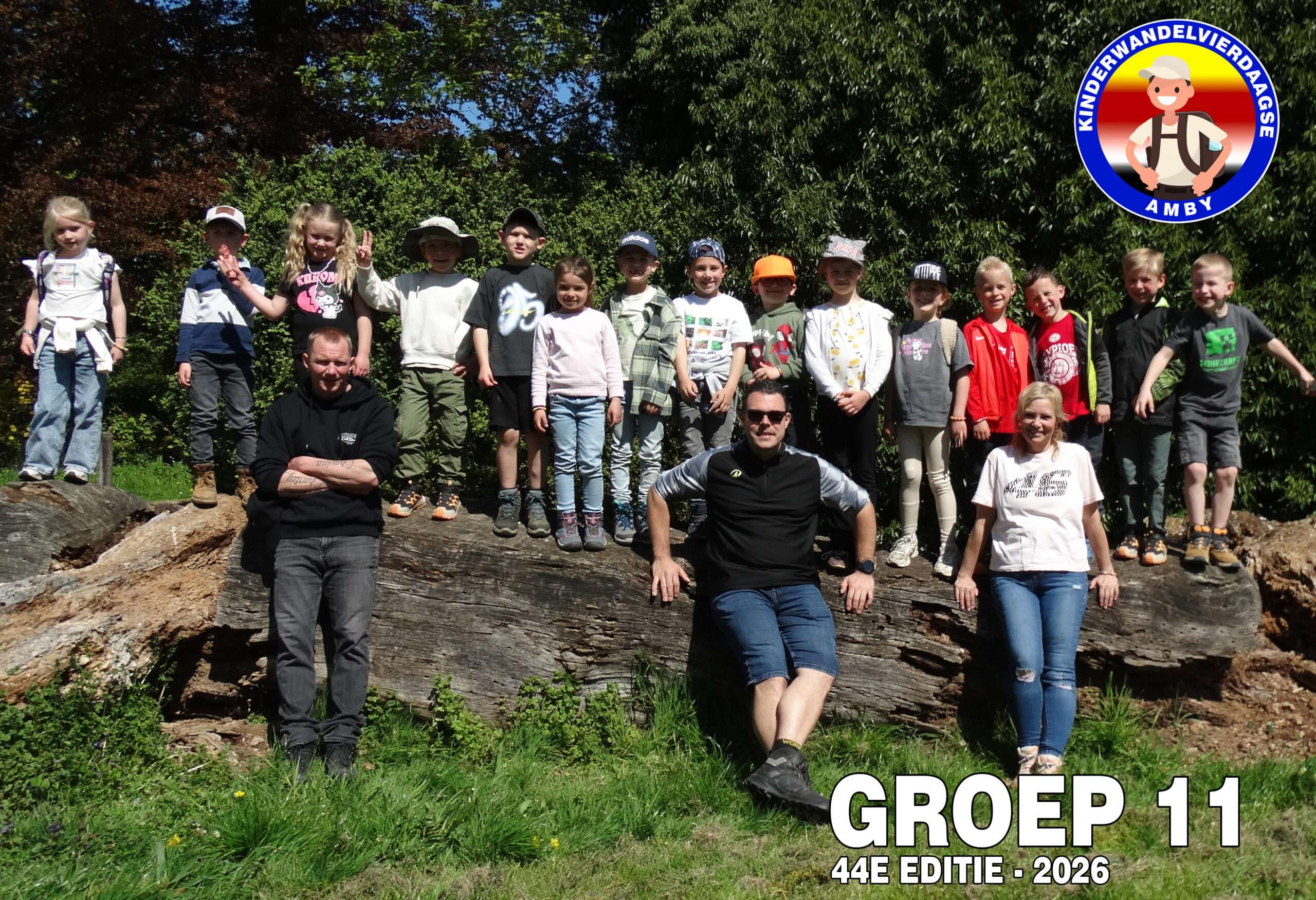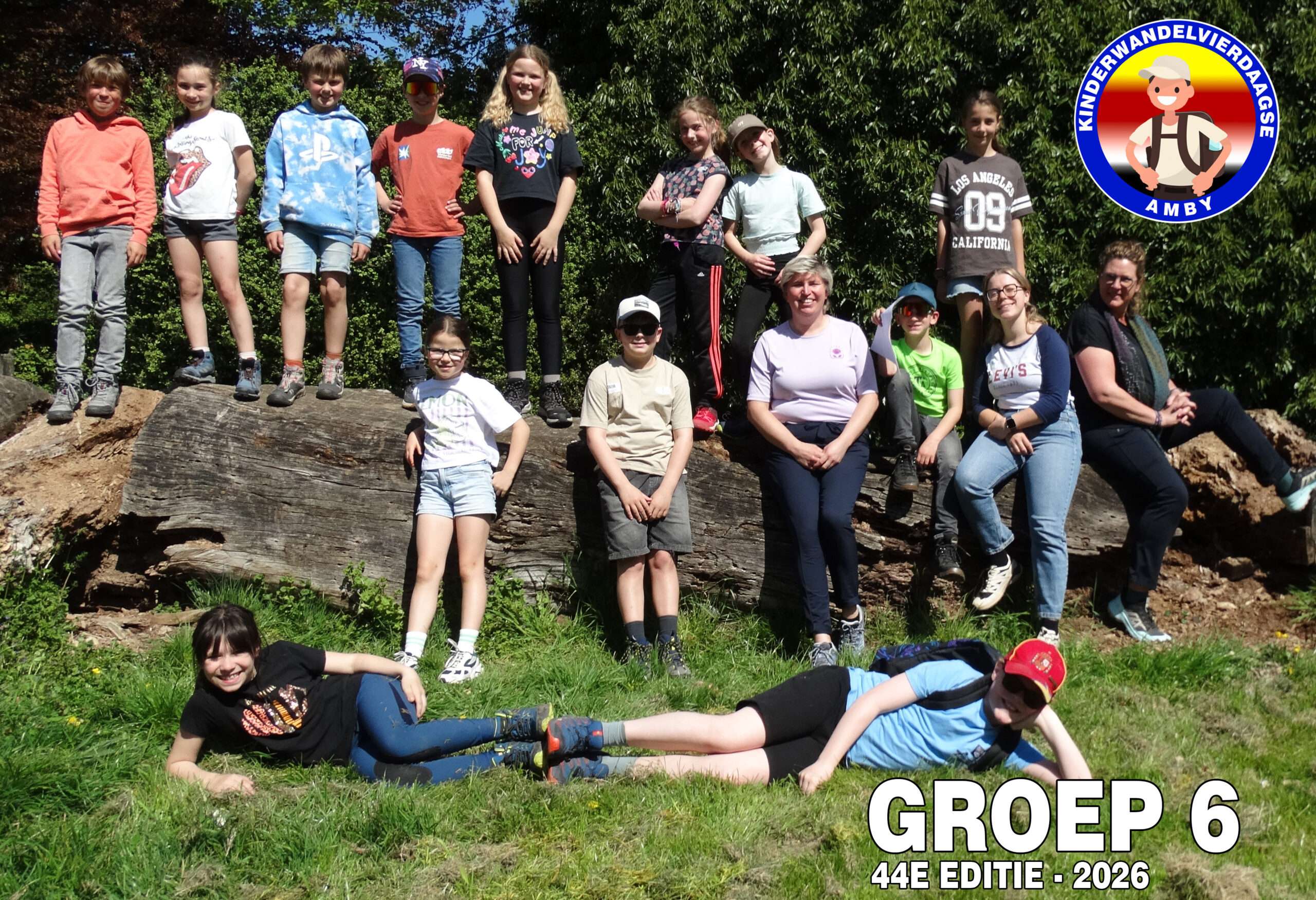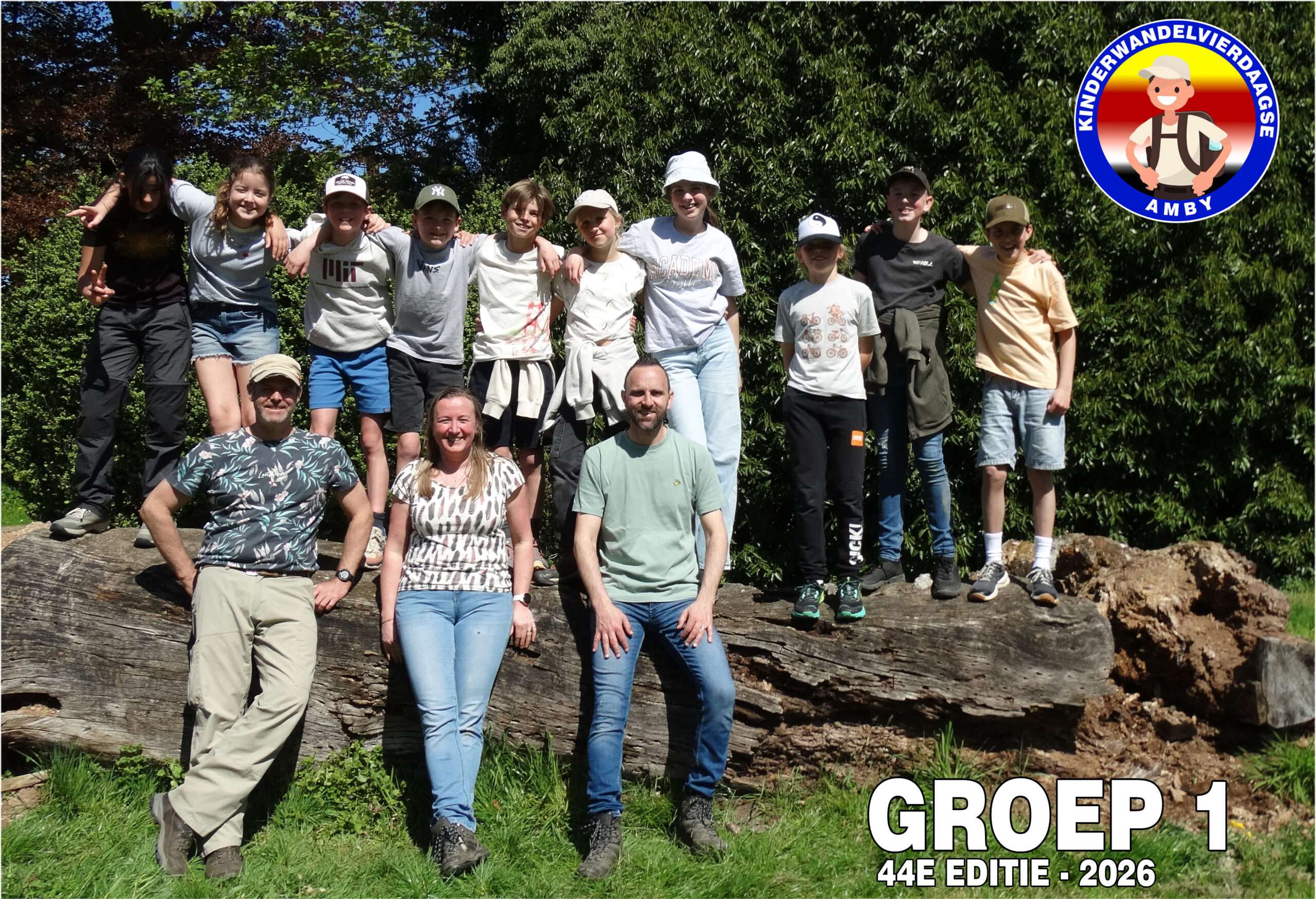 Vandaag was het dan eindelijk zo ver! De 44e editie van de wandelvierdaagse ging van start en het was droog! De ochtend kou deerde niemand want we zagen links en rechts al een korte broek. Nadat alle 127(!) deelnemers hun groepsnummer te horen hadden gekregen verzamelden we op het grasveld van het Severenplein. Maar eerst werd nog een jarige deelnemer in het zonnetje gezet. Deze bleef de hele dag herkenbaar door zijn verjaardagshoedje. Hoe vaak komt het nou voor dat je door 200 mensen wordt toegezongen? Eenmaal buiten zorgden Prins Tum en Prinses Quinn voor de officiële start van de wandelvierdaagse 2026. Vandaag ging de tocht naar het “dellengebied” met een kleine pauze in Rothem en de Geulhemermolen liepen we naar de kiezelkuil op de Amyerhei. Hiervoor moesten steile stalen trappen worden beklommen en onder- over- of dóór omgevallen bomen klimmen. Ondertussen maakte de organisatie de grote pauze plaats gereed (dankjewel Bregje Boer voor de gesponsorde bolderwagen en Matthijs van Zuuren voor het speciale vervoer!) Met touwen maakten we een heuse tokkelbaan. Deze werd na de lunch intensief gebruikt (door zowel kinderen als iets oudere kinderen🫣). Voor degene die dit toch nog wat te heftig vonden waren er genoeg takken om hutten te maken of gewoonweg lekker omlaag de kuil in te glijden. Tip voor de ouders: de Vanish oxi-action is in de aktie bij de Plus 😆