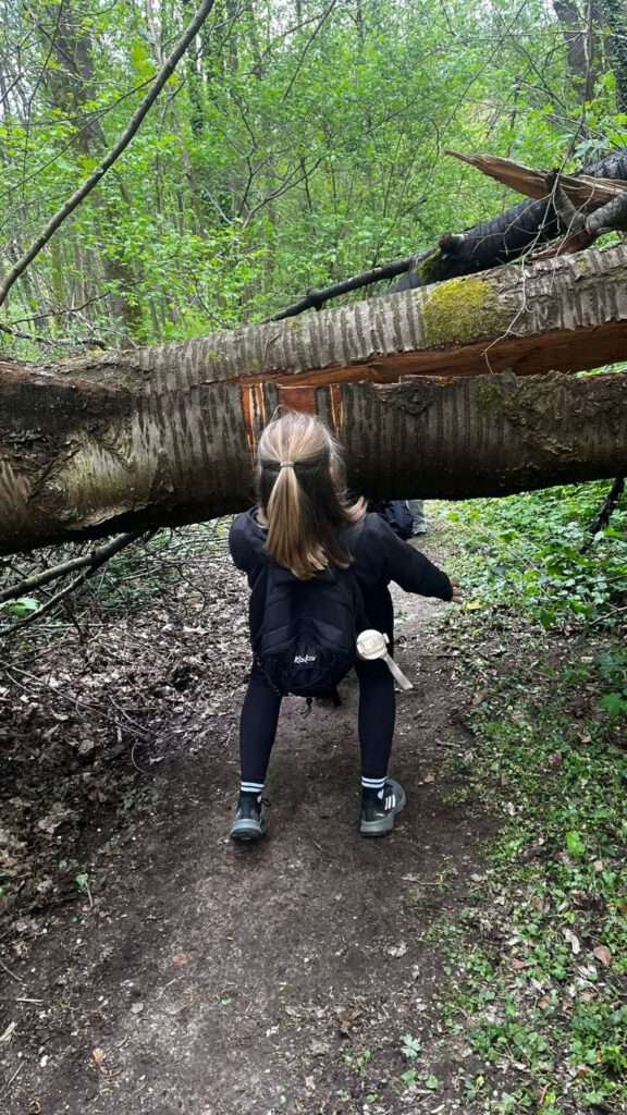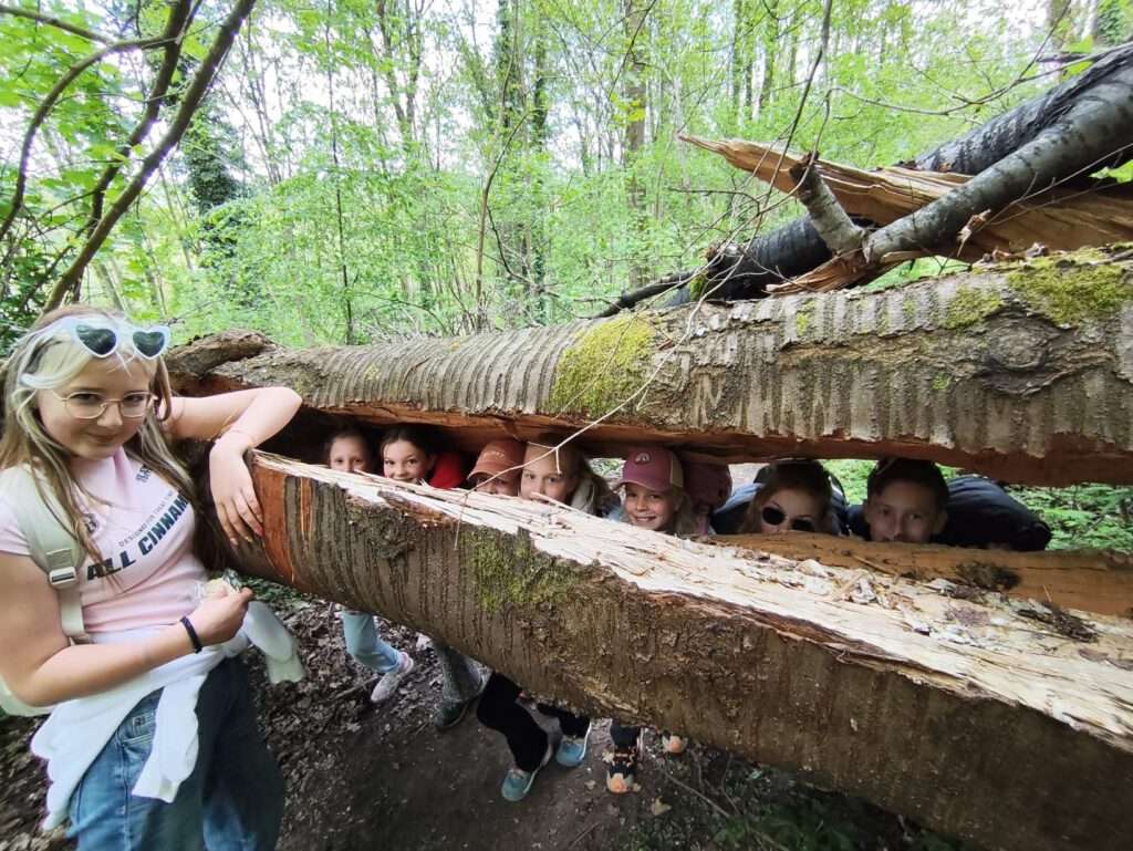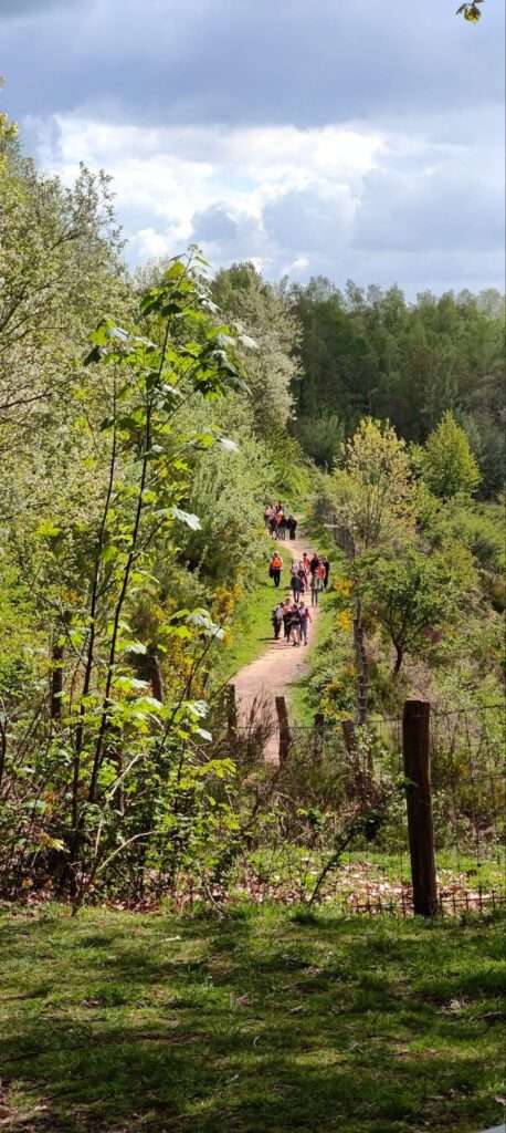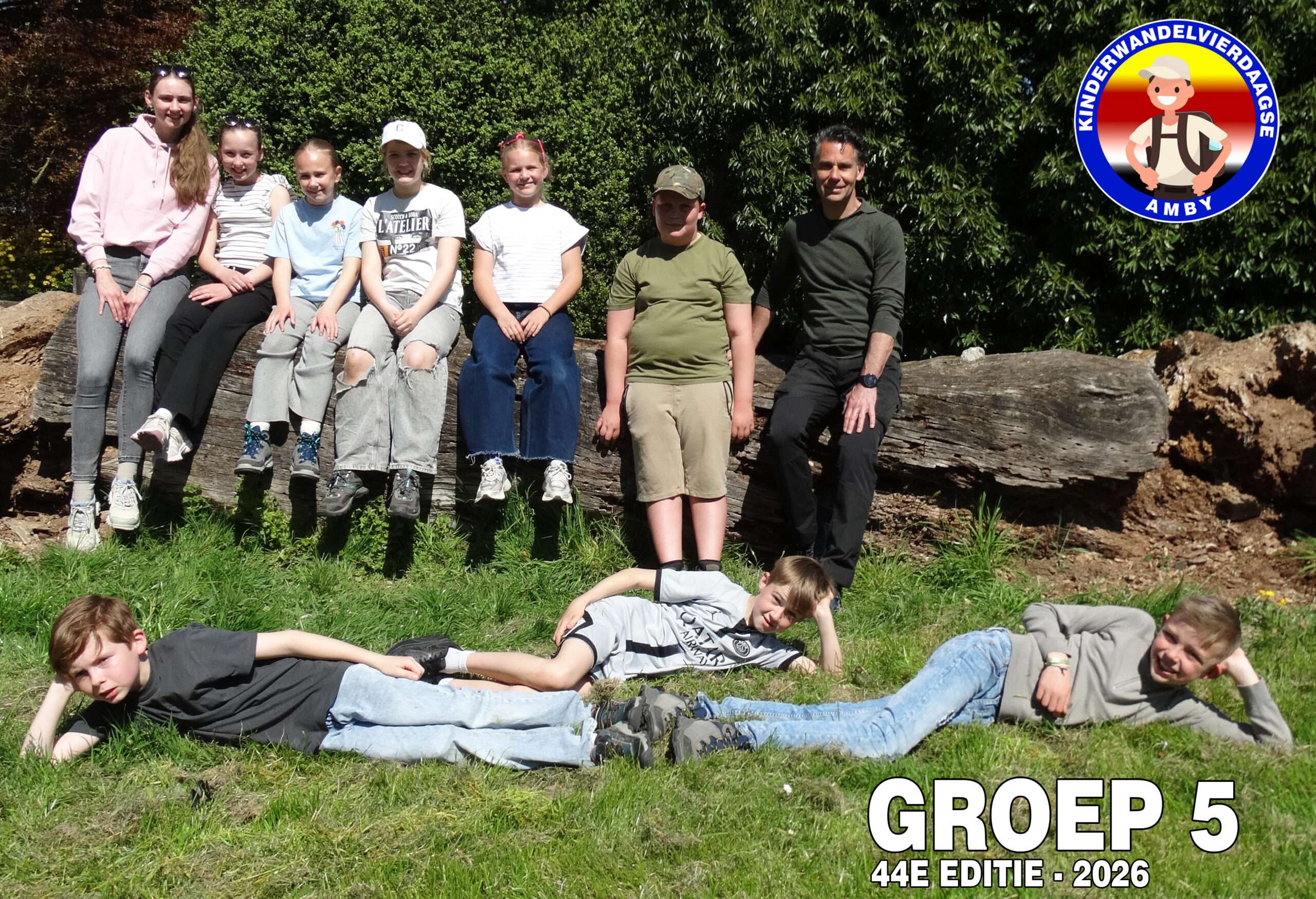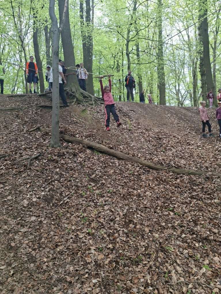 Vandaag was het dan eindelijk zo ver! De 44e editie van de wandelvierdaagse ging van start en het was droog! De ochtend kou deerde niemand want we zagen links en rechts al een korte broek. Nadat alle 127(!) deelnemers hun groepsnummer te horen hadden gekregen verzamelden we op het grasveld van het Severenplein. Maar eerst werd nog een jarige deelnemer in het zonnetje gezet. Deze bleef de hele dag herkenbaar door zijn verjaardagshoedje. Hoe vaak komt het nou voor dat je door 200 mensen wordt toegezongen? Eenmaal buiten zorgden Prins Tum en Prinses Quinn voor de officiële start van de wandelvierdaagse 2026. Vandaag ging de tocht naar het “dellengebied” met een kleine pauze in Rothem en de Geulhemermolen liepen we naar de kiezelkuil op de Amyerhei. Hiervoor moesten steile stalen trappen worden beklommen en onder- over- of dóór omgevallen bomen klimmen. Ondertussen maakte de organisatie de grote pauze plaats gereed (dankjewel Bregje Boer voor de gesponsorde bolderwagen en Matthijs van Zuuren voor het speciale vervoer!) Met touwen maakten we een heuse tokkelbaan. Deze werd na de lunch intensief gebruikt (door zowel kinderen als iets oudere kinderen🫣). Voor degene die dit toch nog wat te heftig vonden waren er genoeg takken om hutten te maken of gewoonweg lekker omlaag de kuil in te glijden. Tip voor de ouders: de Vanish oxi-action is in de aktie bij de Plus 😆